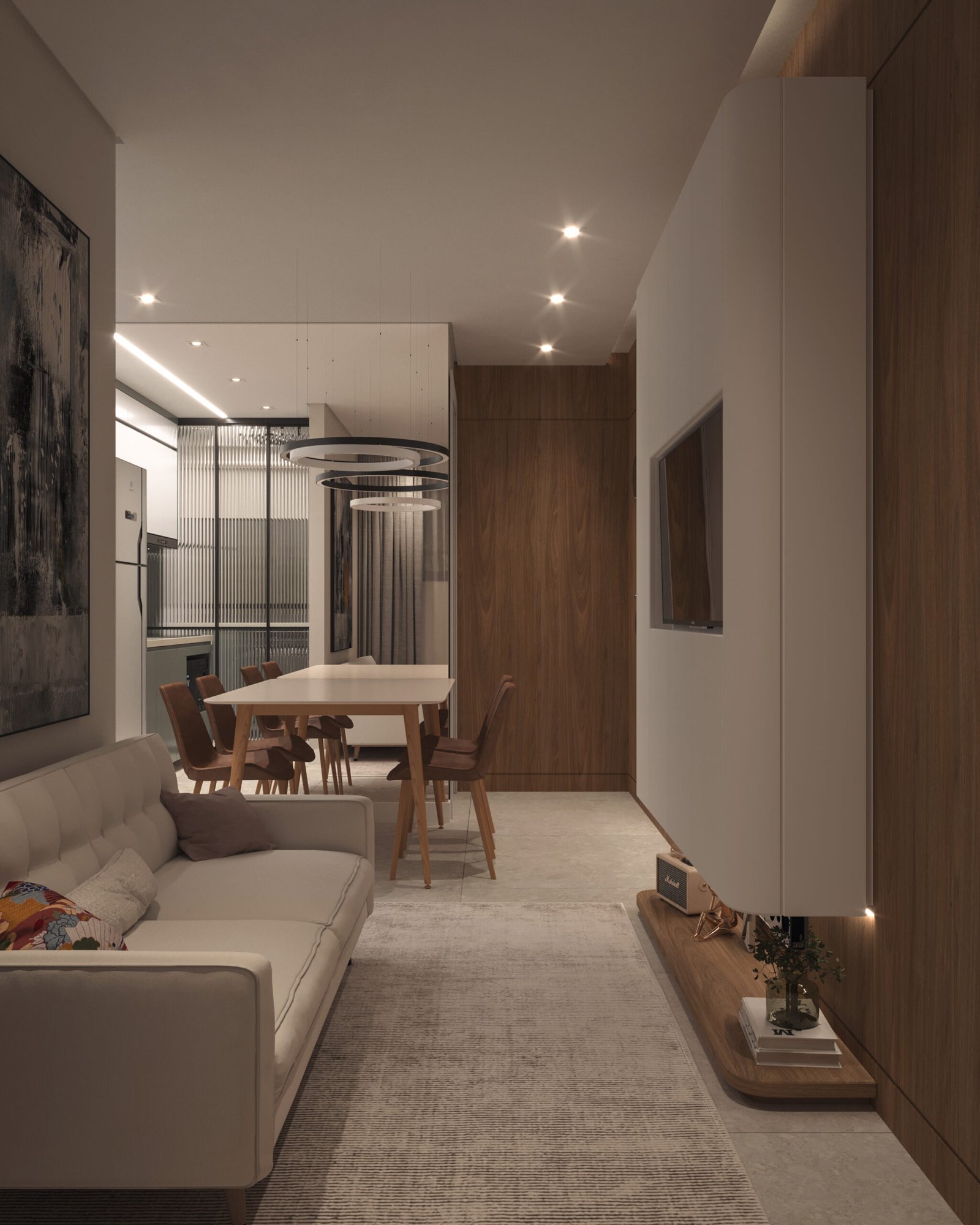 Um apartamento com espaços que priorizam a praticidade, sem abrir mão da estética e do bem-estar.